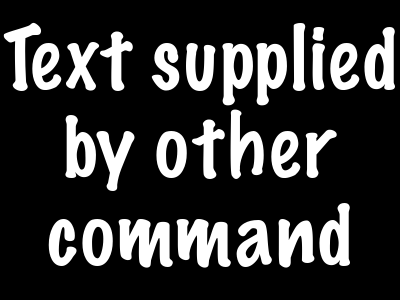 echo -n "Text supplied by other command" | magick -gravity center -background black -fill white -size 400x300 -font /System/Library/Fonts/MarkerFelt.ttc caption:@- result.png