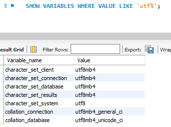 运行SHOW TABLE STATUS FROM your_schema;,您将看到设置的排序规则。甚至在Workbench的Shema检查器中,也会显示正确的排序规则。