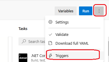 以前,您可能已经导航到YAML管道的经典编辑器,并在UI中配置了生成完成触发器。虽然这种模式仍然有效,但已不再被推荐。建议的方法是在YAML文件中直接指定管道触发器。在经典编辑器中定义的构建完成触发器有各种缺点,现在已经在管道触发器中解决了这些缺陷。例如,无法使用生成完成触发器在与触发管道的分支相同的分支上触发管道。