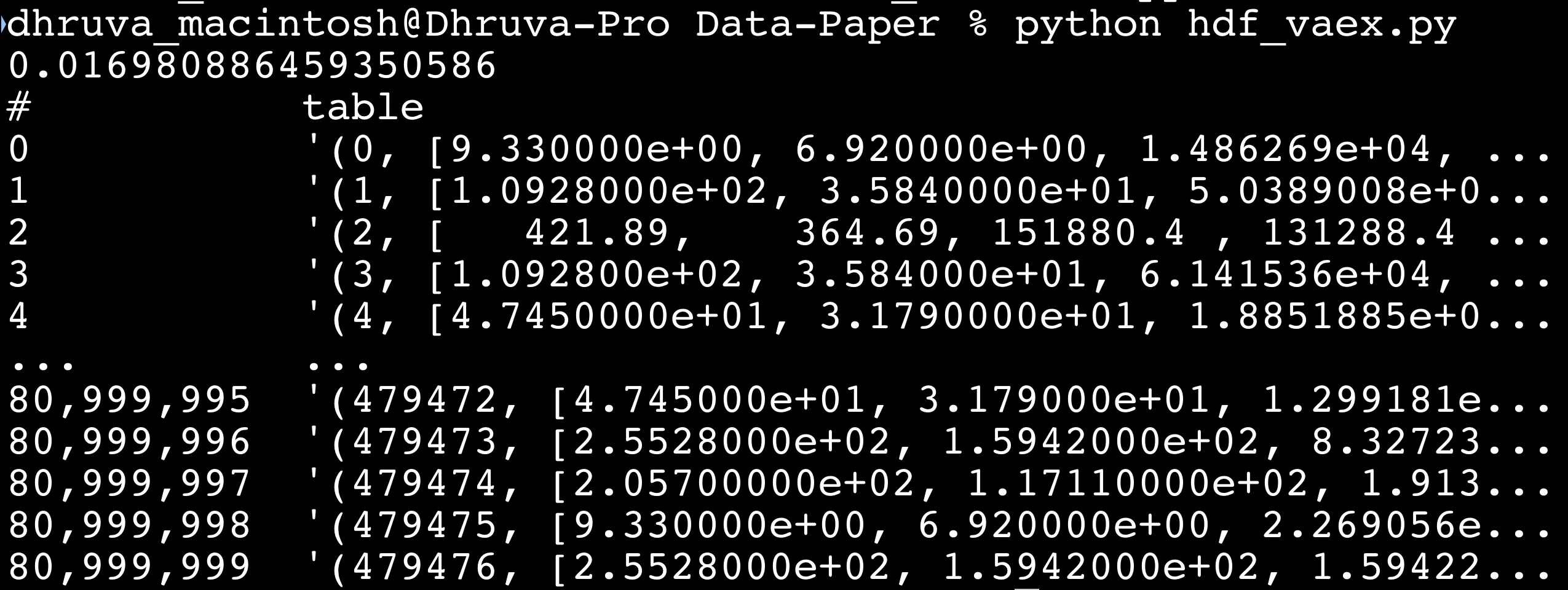 我有一个10.11 GB的CSV文件,我已经转换为hdf5使用dask。它是str、int和浮值的混合物。当我试着阅读它时,我只得到屏幕截图中给出的数字。有人能帮帮我吗?