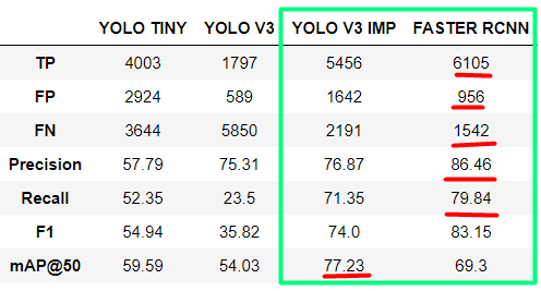 对于YOLOv3,我得到了最好的mAP@50,但是为了更快的RCNN,我得到了更好的其他指标(精确性、回忆性、F1分数)。现在我想知道如何阅读它,在这种情况下哪种模式更好呢?