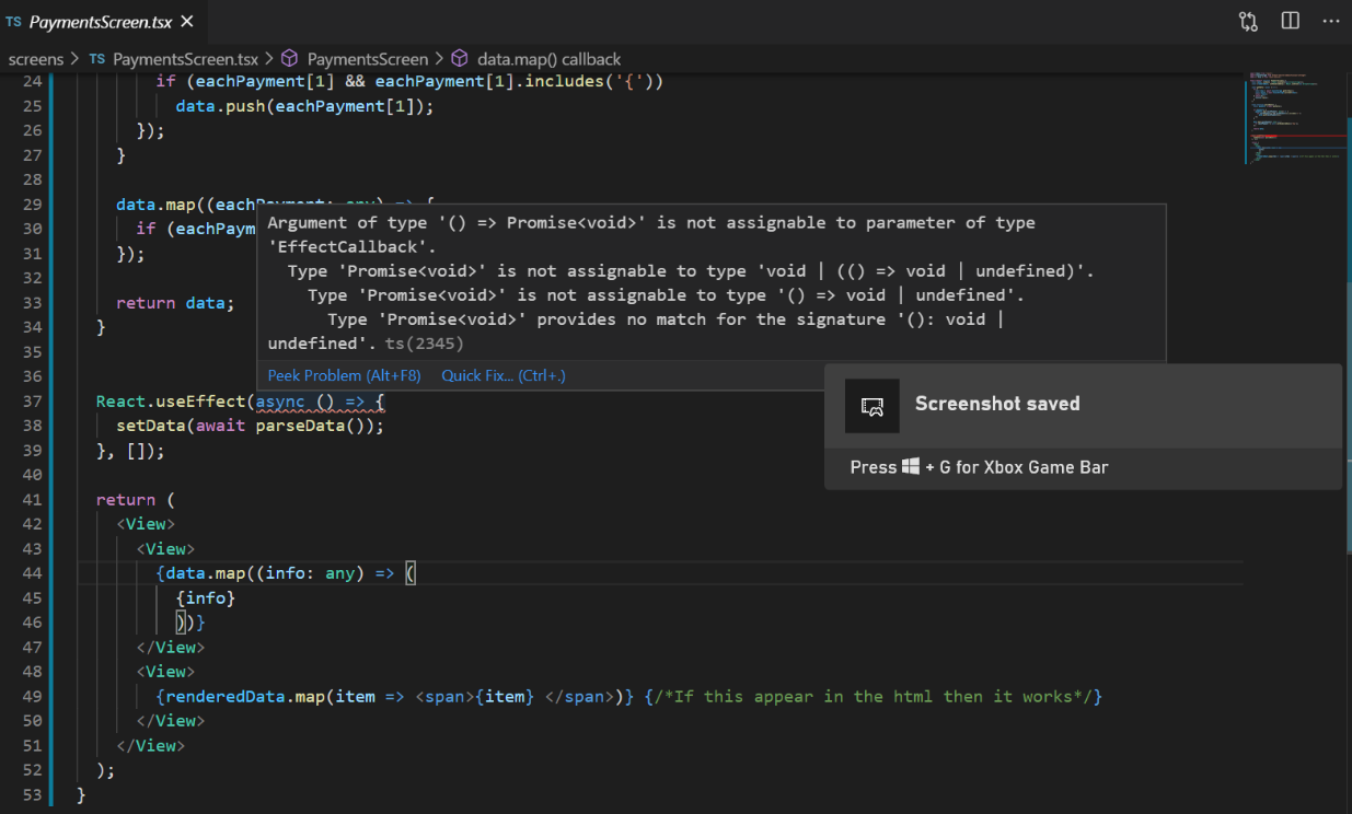 {data.map((info: any) => <Text>{info}</Text>)}