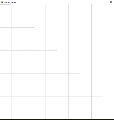 pg.draw.line(window, pg.Color("Grey"), (j * grid.node_width, 0), (j * grid.node_width, grid.win_width))