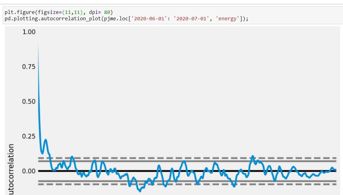 我用Pandas中的函数autocorrelation_plot绘制了自相关线,并希望访问它生成的数据。