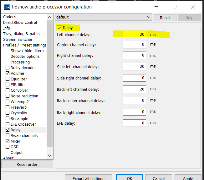 如何使用ffmpeg使音频文件(例如mp3)的左侧通道延迟20毫秒?