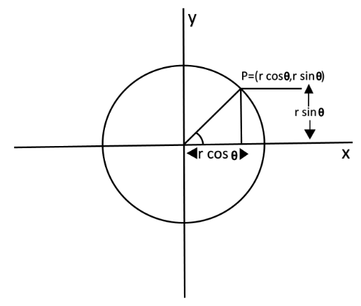 如果我们知道一个点的角度和半径,我们就可以解x,y。