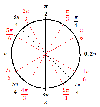 注意:右边是零弧度。如果你逆时针阅读,当你在圆圈的“顶部”时,你得到1/2的PI,当你在左边的时候,得到1* PI,底部的1,5 * PI,右边的2* PI。