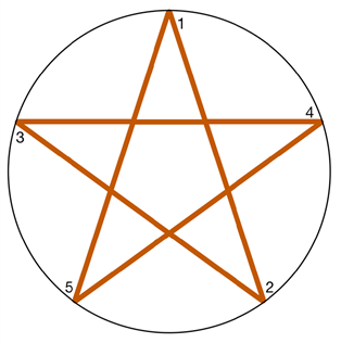 为了得到这些点的坐标,他们“想象”了一个圆,因为如果恒星是规则的,那么每个点都应该与中间的距离相同(因此在恒星的中点周围画了一个假想的圆)。如下所示: