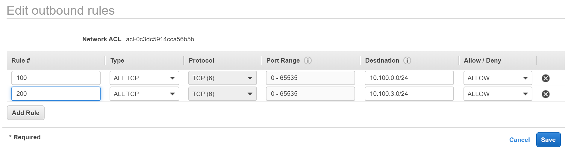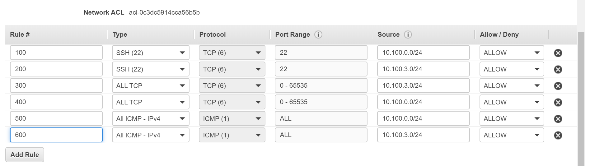 注:- 10.100.3.0/24和10.100.0.0/24是我的公共子网的CIDR