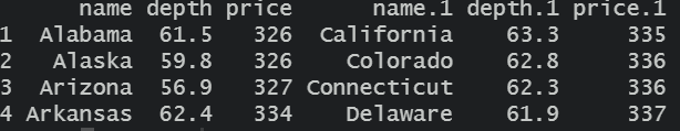 #Data frame 1 - Merge diamonds dataset w/ state names dataset