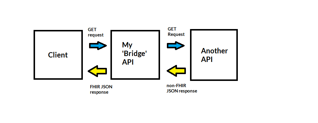 但是,使用hapi或vonk,您将有一个fhir服务器设置,它将接收请求(通常是GET),将请求转换为(其他)内部REST server...get返回数据,将其转换为fhir (此时通常为r4 ) resource........and,该resource........and将被发送到最终客户端。简而言之,“适配器”设计模式。