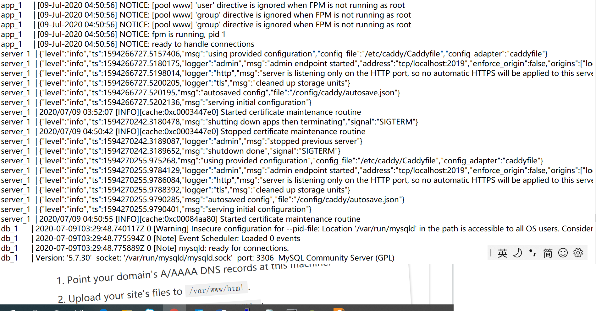 ./config/caddy/Caddyfile:/etc/caddy/Caddyfile现在,我正在使用,它一直在崩溃,说我正试图找到一个文件的文件夹,反之亦然。所以我自己制作了文件,并从容器中复制了内容。