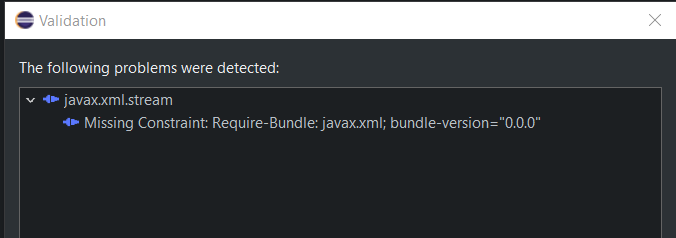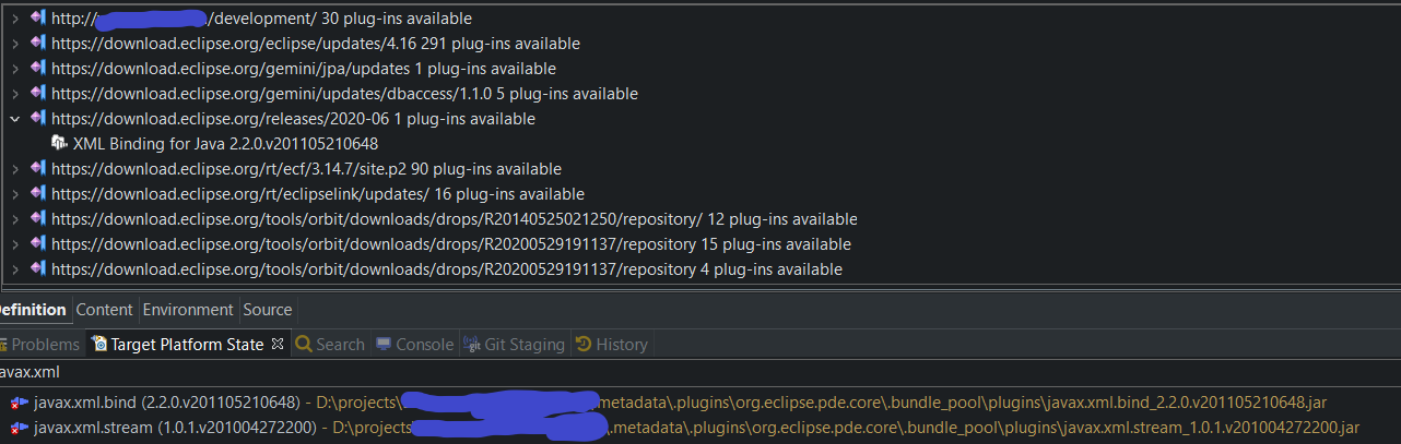 我需要从p2站点轨道R20200529191137- https://download.eclipse.org/tools/orbit/downloads/drops/R20200529191137/repository解析Java流。这个特性对javax.xml有一个要求。