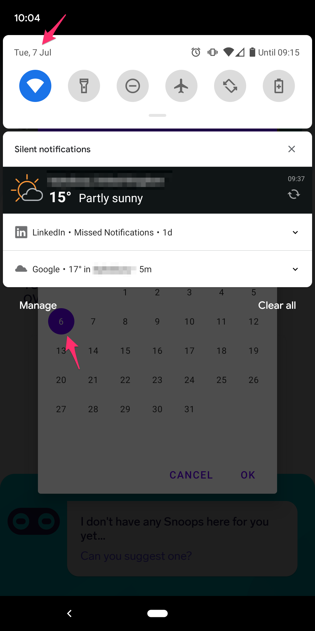 }当显示时,它显示选定的昨天日期(7月6日)如下所示: