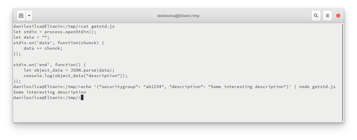 另一种更有趣的方法是创建一个脚本,它只接收来自aws的json数据,并使用一个map作为参数,将信息过滤到我需要的地方。我假装用一个简单的外壳重定向(管道)来做这件事。