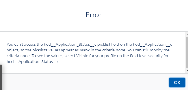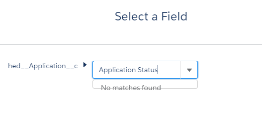 流程生成器有一个关于应用程序状态(API名称: hed__Application_Status__c)字段的条件。