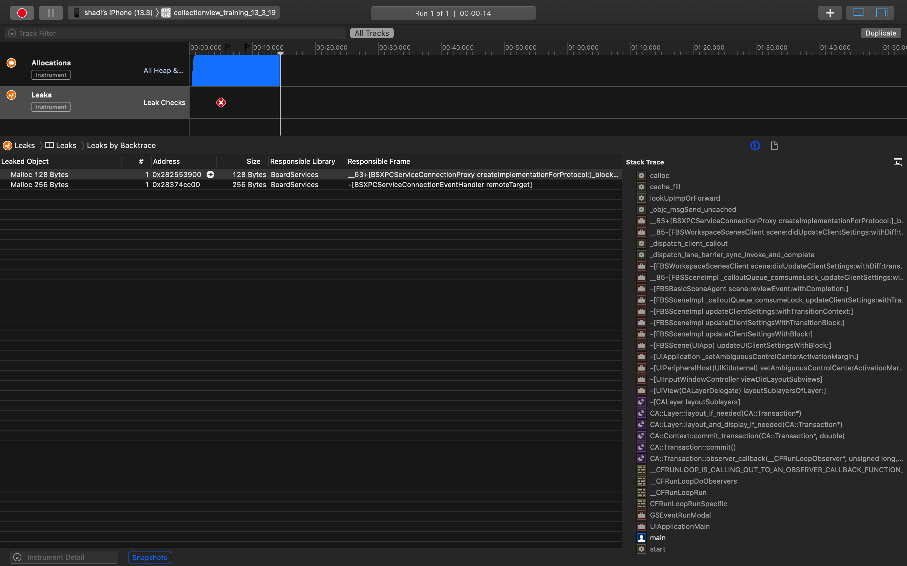 无论如何,“泄漏”工具和“调试内存图”都集中在不同的问题上,并会产生不同的结果。泄漏找不到强的参考周期。同时,“调试内存图”功能在查找传统泄漏方面也有了更好的表现。