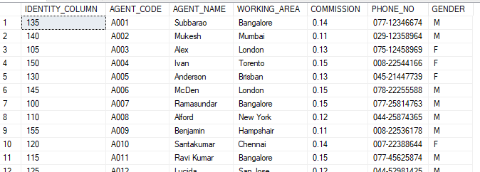 group by Agents.GENDER;