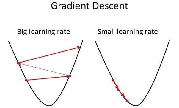 如果你使用恒定的高学习率,你将“跳跃”在最低点。如果你使用恒定的小学习速率,它将需要大量的时间来收敛。这就是为什么学习速度下降是个好主意。