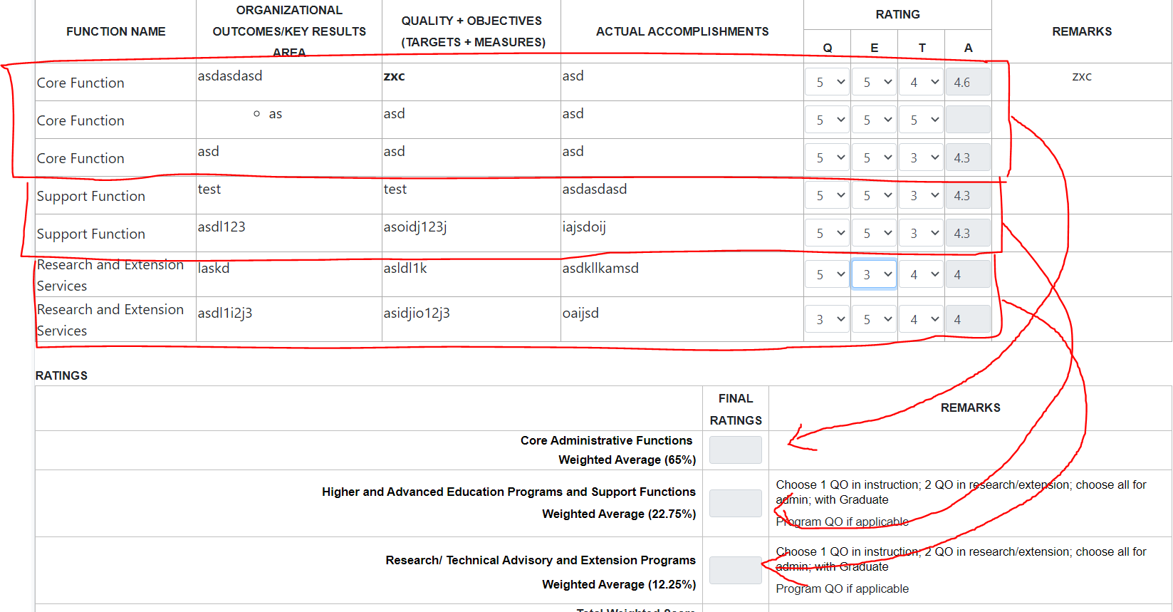 我是Javascript/Jquery的新手,我想根据文本框中每个函数名1st column of the table的值来计算最终的评分。