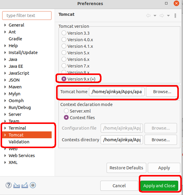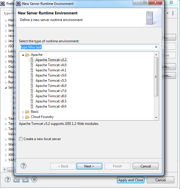 步骤2:重新启动Eclipse . Goto Windows > Preferences > Tomcat