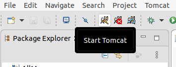 步骤5:现在,3个Tomcat图标将在标准工具栏中可见。要启动,stop和restart使用以下3种图标