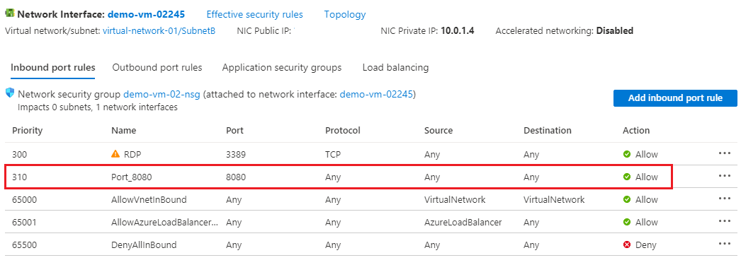 现在,在入站端口规则中,我添加了端口8080,但无法连接。