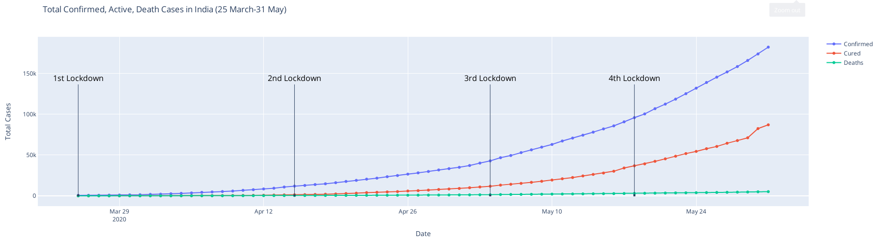 我如何在中增加箭头的尾部,以便文本,这里写的1st Lockdown,2nd Lockdown,3rd Lockdown and 4th Lockdown是可区分的,而不是出现在直线图之间?
