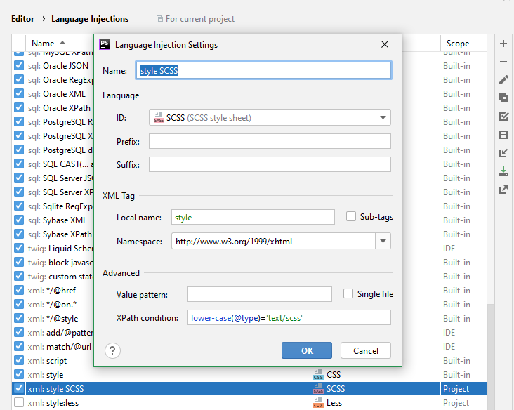 </style>我假设我需要在PHP文件中为SCSS和Twig创建某种新的语言注入配置,但是我找不到关于如何这样做的好文档。