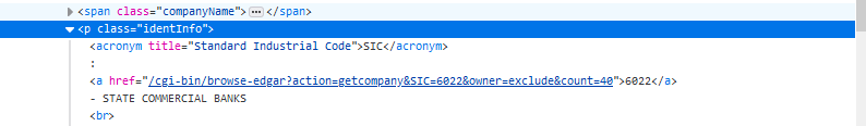 STATE COMMERCIAL BANKS对于url = 'https://www.sec.gov/cgi-bin/browse-edgar?CIK=1090872&owner=exclude&action=getcompany&Find=Search',它打印: