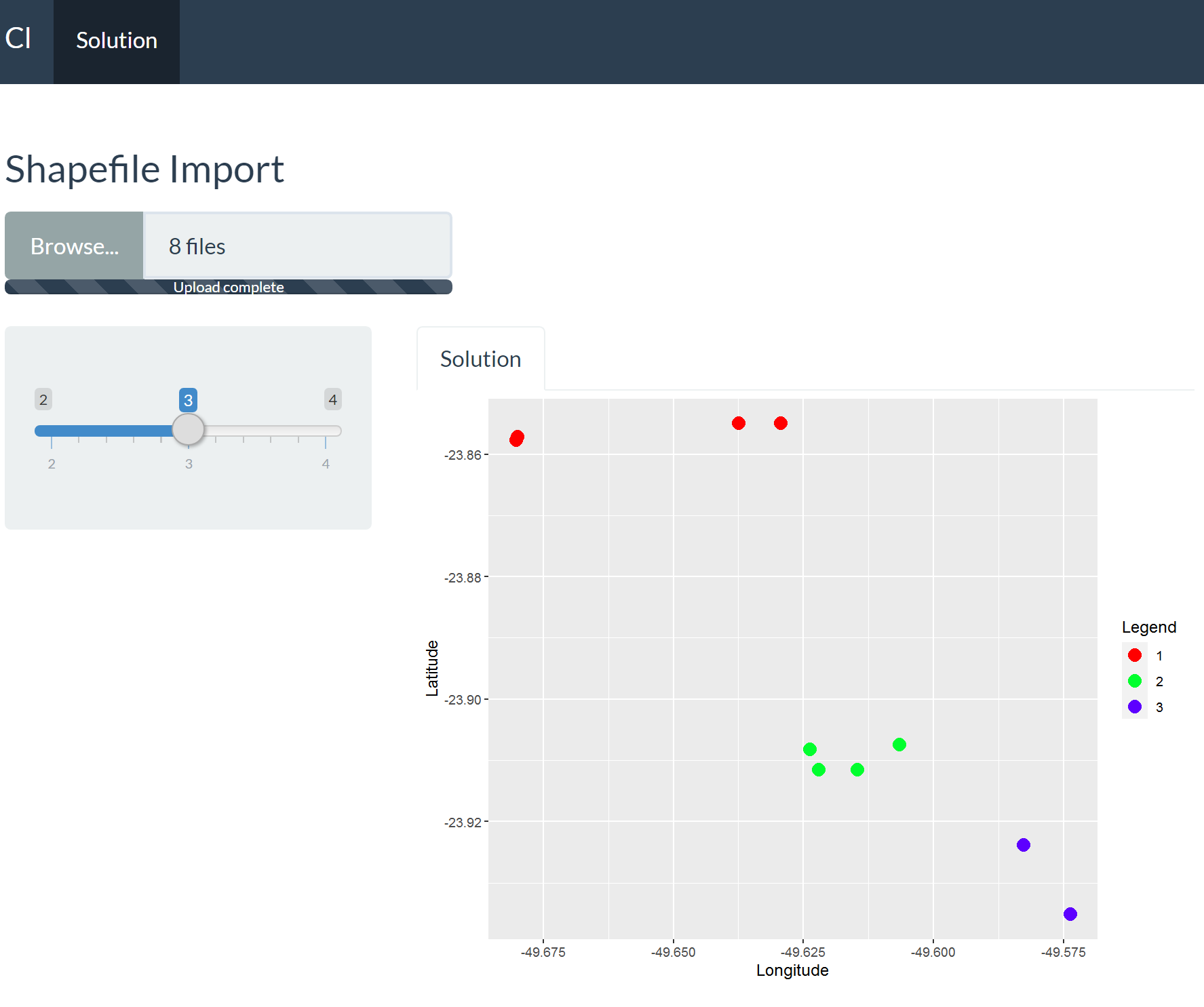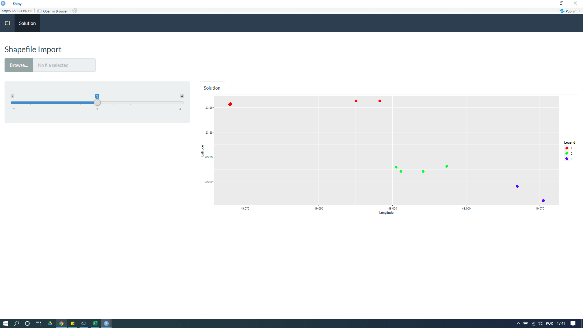 下面的代码是从一个shapefile文件生成一个散点图。它是正常生成的(见附图)。但是,我不想直接将文件目录插入到代码中,而是通过一个fileInput插入文件。我在下面插入了fileInput,但是我希望帮助调整我的服务器。我认为有必要调整一些与反应有关的东西。