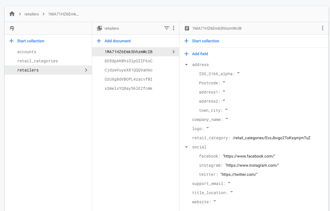 相反,我希望将retail_category转换为单独的集合,并在零售商字段中引用它(这将否定以下引用):