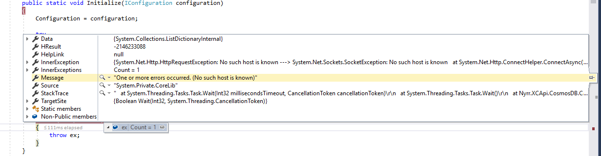Azure cosmos是可公开访问的,我可以在Visual中使用简单的Web进行访问。但是它不能通过本地系统的港口应用程序访问。版本:'3.4‘