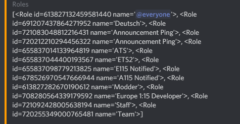 我想让我的机器人向我展示用户角色的列表。如果我使用user.roles,我就会遇到以下问题: