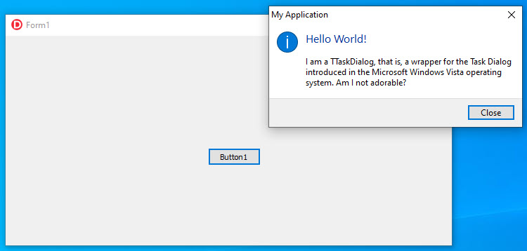 LogoAppForm.TaskDialog1.Title := 'Hello World!';