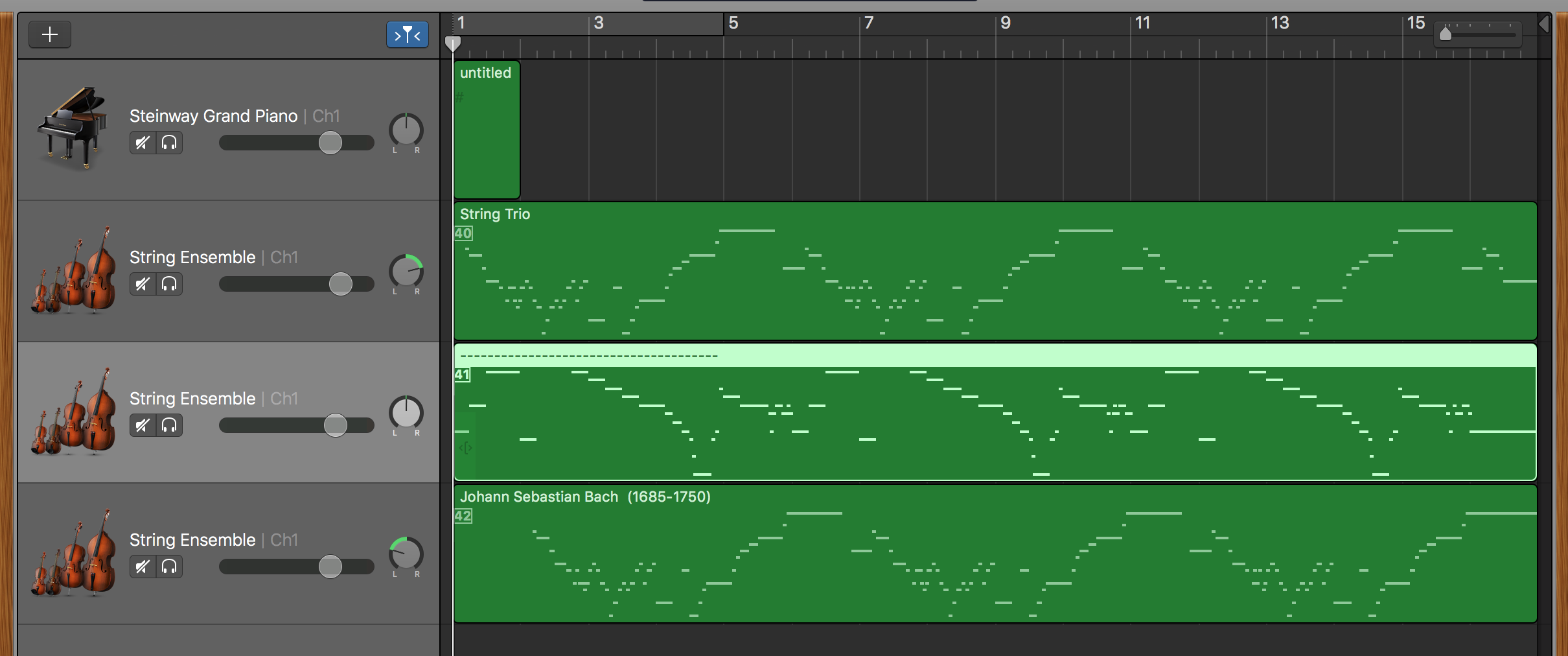 instrument = n.activeSite.getInstrument() # instrument voice我想弄清楚这条小溪里的每一个音符都属于哪个音符。例如,当我在GarageBand中打开文件时,这些注释被组织成不同的轨道: