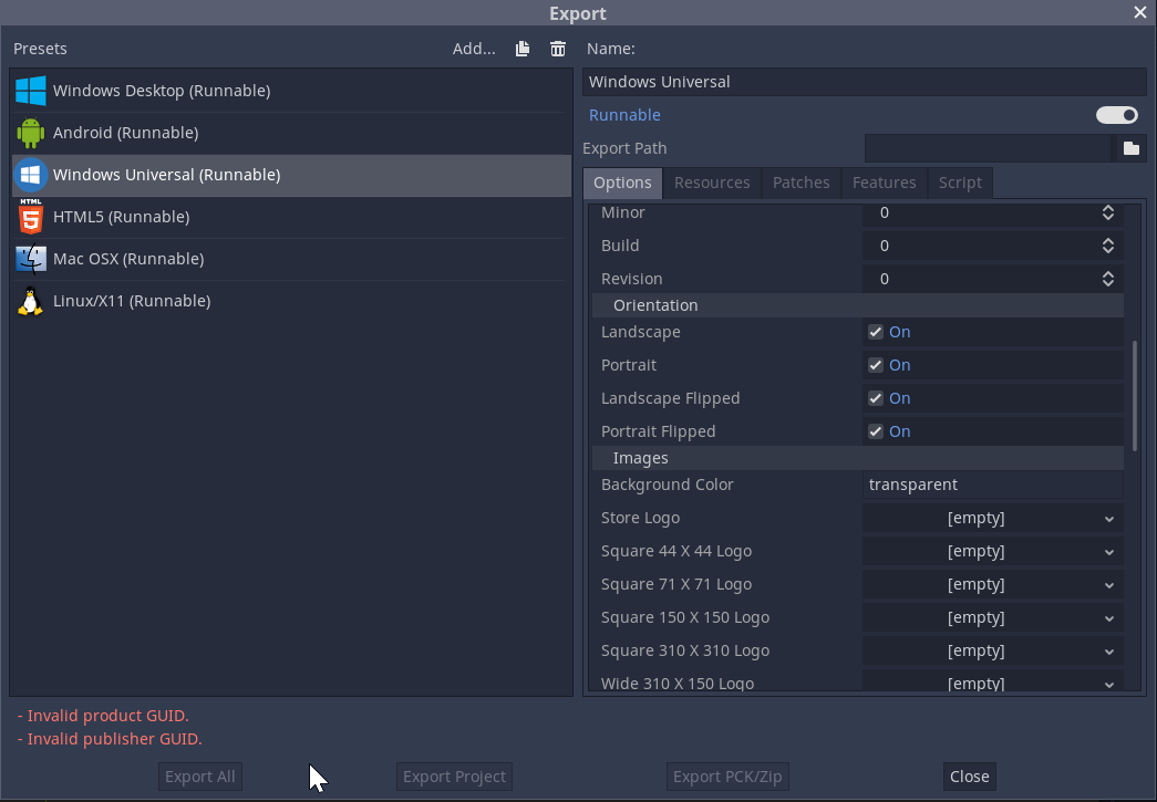 从Godo3.2.2开始,UWP的导出目前已经中断;请参阅这个GitHub问题。