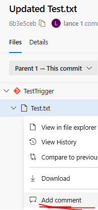 将{OrganizationName}、{ProjectID}、{RepostoryID}和{CommitID}替换为您自己的值,它应该可以在讨论中得到注释。