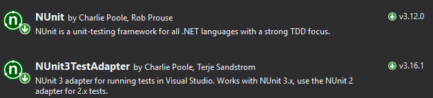 确保NUnit测试适配器也安装在nuget包下,否则visual将无法运行测试。
