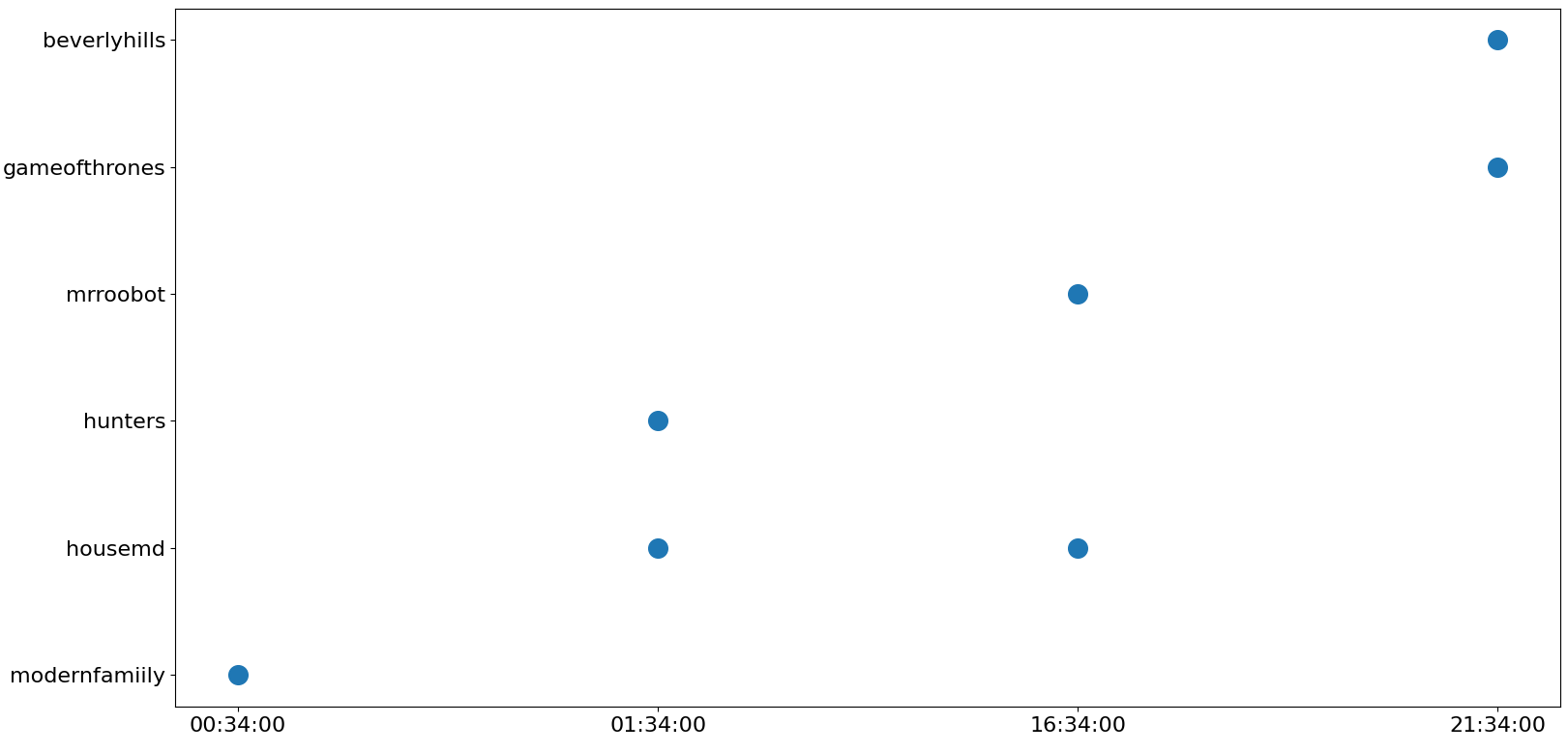 38 mrroobot 16:34:00我需要按升序制作电视剧,从00:00到23:59,根据开始(时间)。我试过如下