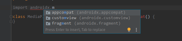 虽然我已经将Android设置为自动导入所需的库,但我还是尝试了显式导入android.support.v4.*、android.support.*、androidx.*,希望它能够工作,但结果并非如此。因此,我去了GitHub回购的通用Android音乐播放器寻求帮助。我在import androidx.media.MediaBrowserServiceCompat中找到了这个文件语句。但我找不到任何一个名叫