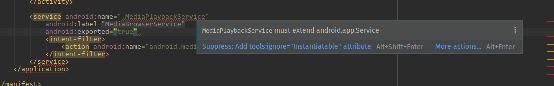 以及为什么我的宣言说MediaPlaybackService must extend android.app.service