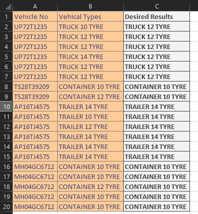 Dim sh As Worksheet, lastRow As Long, rngVeh As Range, rngTemp As Range, arrFin As Variant