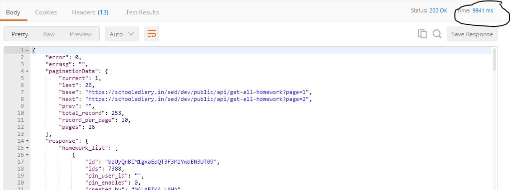我在laravel-5.7中有一个家庭作业表,其中5000条记录也有通过HasMany()或HasOne() Relation提供的一些关系记录。为了获得快速结果,我尝试了许多类型的雄辩查询。但是邮递员的结果时间是10200到10700毫秒,但是当我直接把这个解说给邮递员时,我就把这个变成500到1100毫秒。我想得到它在大约800毫秒后的绑定形式,拉拉维尔资源或正常阵列。