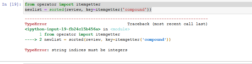 newlist = sorted(review, key=itemgetter('compound'))
