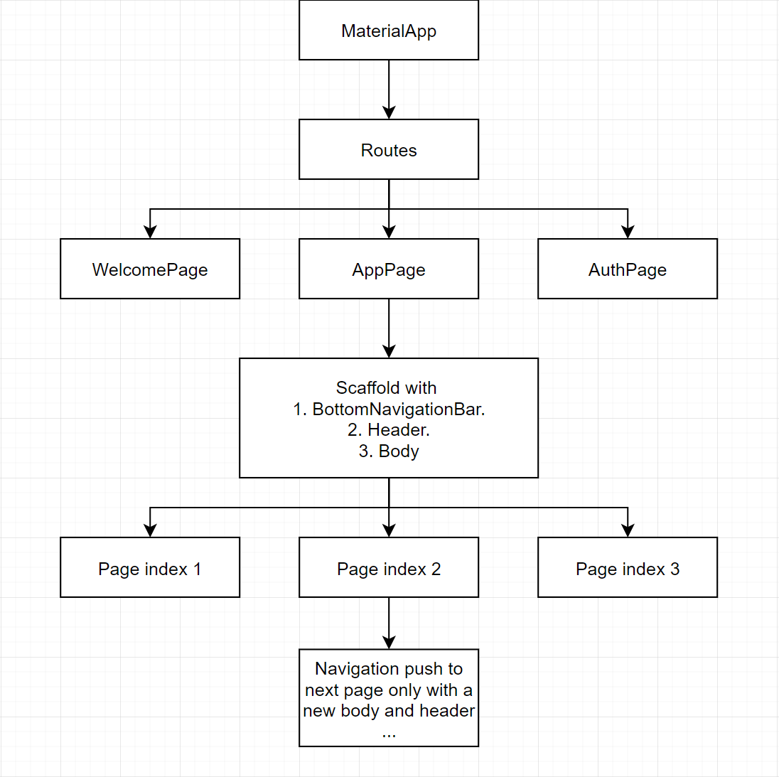 我理解这一点的方式是,第一个被删除的页面是一个索引2页,它被包装在MaterialApp中,它后面是整个应用程序的固定的MaterialApp。目前,我不知道如何删除一个固定的页面。我给出了一个图片,我目前是如何在应用程序中导航,它可能不是完美的,但我不知道更好,任何帮助将不胜感激。