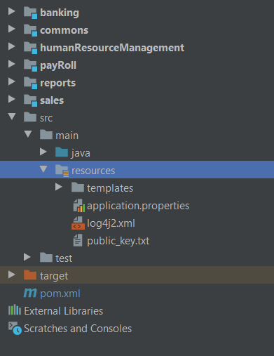 Accounting - Parent -> banking - Child -> Commons - Child -> Reports - Child -> humaResourceManagement - Child -> payRoll - Child -> sales - Child