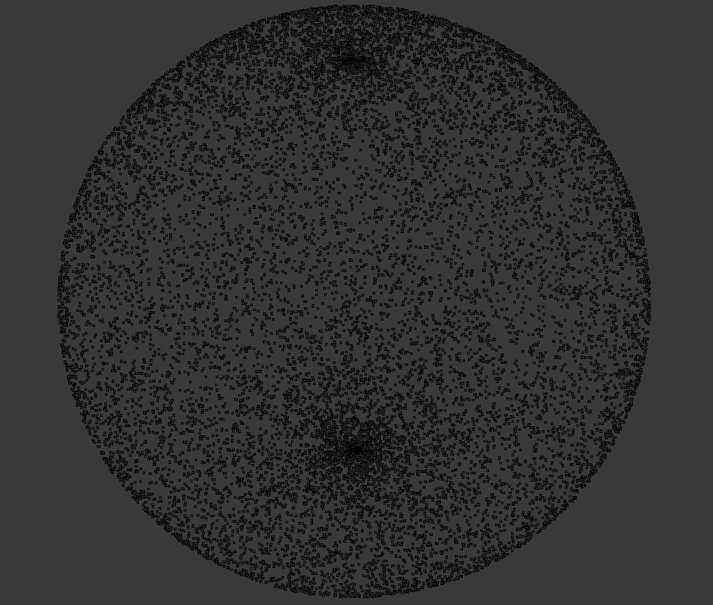 我试着模拟点源发出的辐射。为了做到这一点,给定源的坐标和所需的发射射线长度,我在球面坐标中随机生成一个方向矢量,将其转换为笛卡儿,并返回正确的端点。但是,当我运行这个程序,并在Blender中可视化产生的点云(由所有随机生成的端点组成)时,我看到它在球体的“极点”上更密集。我希望这些点沿球体均匀分布。我怎样才能做到这一点?