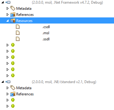 该项目是多目标的.Net 4.7.2和.Net标准2.1,通过比较dotPeek中的输出,我可以清楚地看到新输出中缺少这些资源: