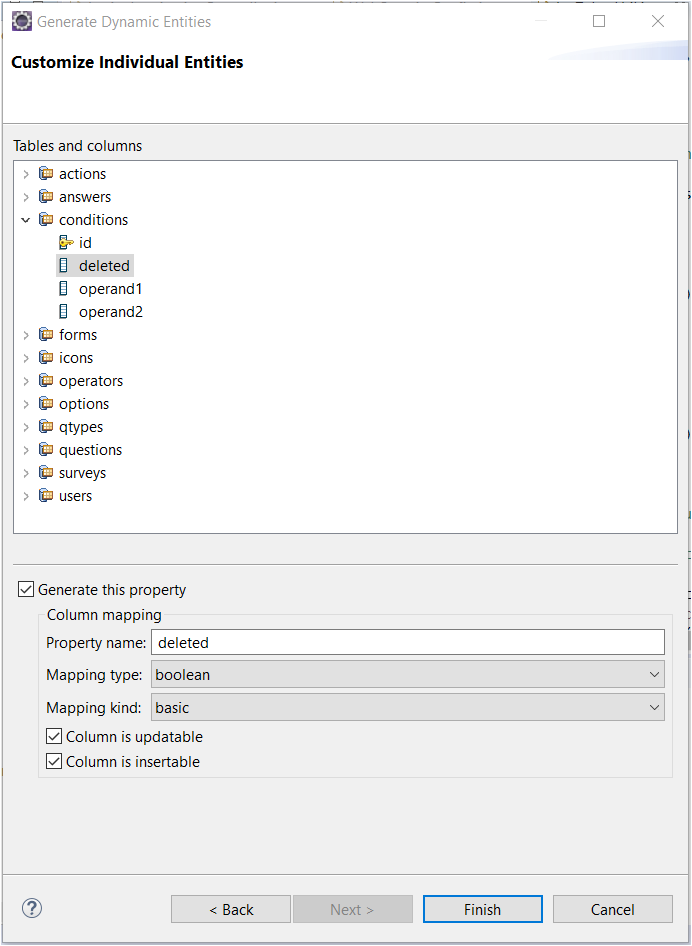 例如,在上面的图中,我为列定义了用于表boolean conditions 或entity condition**!**的,用于表conditions或entitycondition**!**。